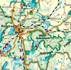 Aus Berlin von der B 96 kommend fahren Sie in Neustrelitz auf die B 198 in Richtung Woldegk.